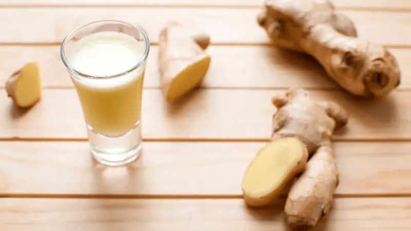 Laat je niet afschrikken door de krachtige smaak van verse gember. Dit kan een vurig gevoel in je mond geven als je een gembershotje drinkt.
